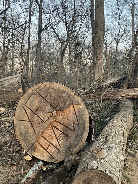 this yee-haw carved into a log by the Haw River in Saxapahaw on my way home from RDU