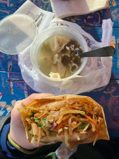 eating the spicy vegan burger from Sister Liu’s outside in December (WTF @ climate catastrophe….) this remains my perfect meal