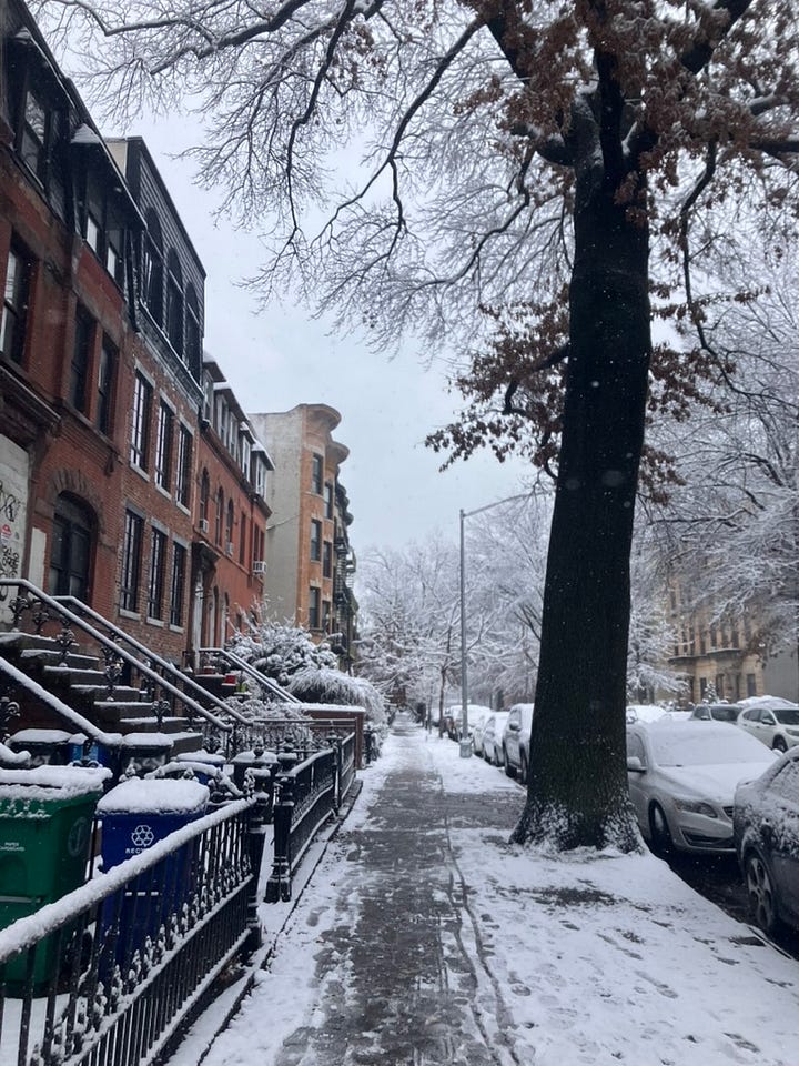 snowy Crown Heights streets.