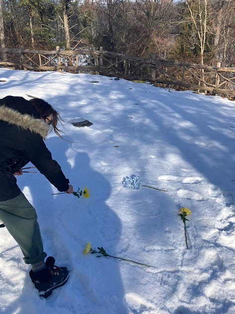 this was technically in January but Beth and I visited George’s grave only to find it snowed over and this was our attempt to decorate it anyway. Very teary but also sweet and lovely.